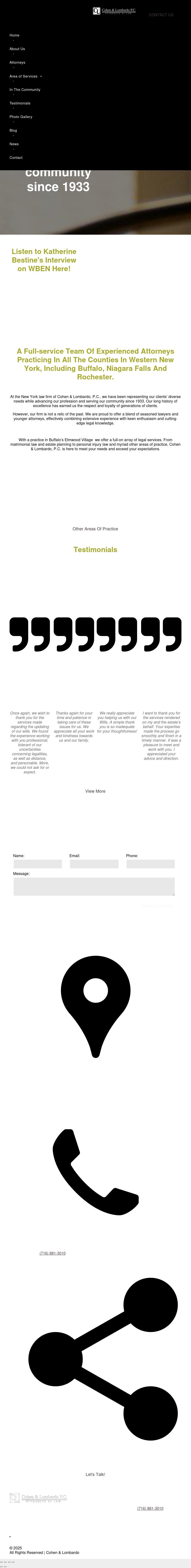 Cohen & Lombardo, P.C. Attorneys Located In Buffalo NY | Cohen & Lombardo, P.C. | Erie County Cohen & Lombardo, P.C., has been handling a wide range of legal matters in and around Buffalo, New York, since 1933. Call our attorneys at 716-262-8428.