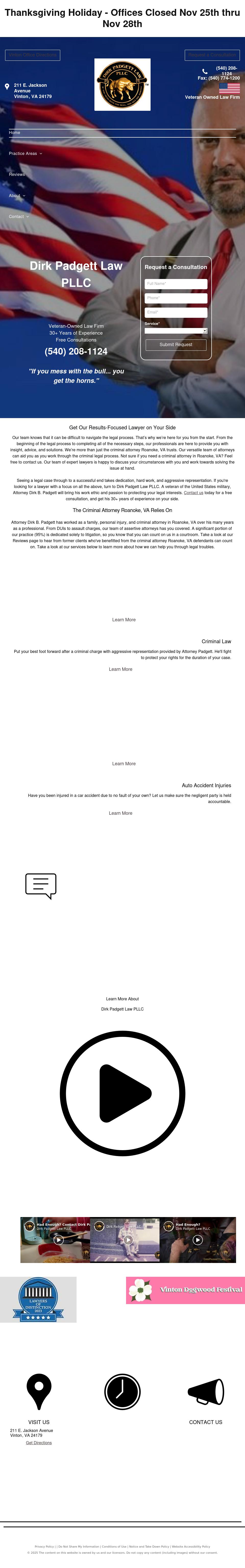 Dirk Padgett Law PLLC Attorney Roanoke VA | Dirk Padgett Law PLLC | Virginia Get a former Special Assistant U.S. Attorney and former military prosecutor on your side. Call Dirk Padgett Law PLLC in Roanoke at 540-904-1630. Free consult.