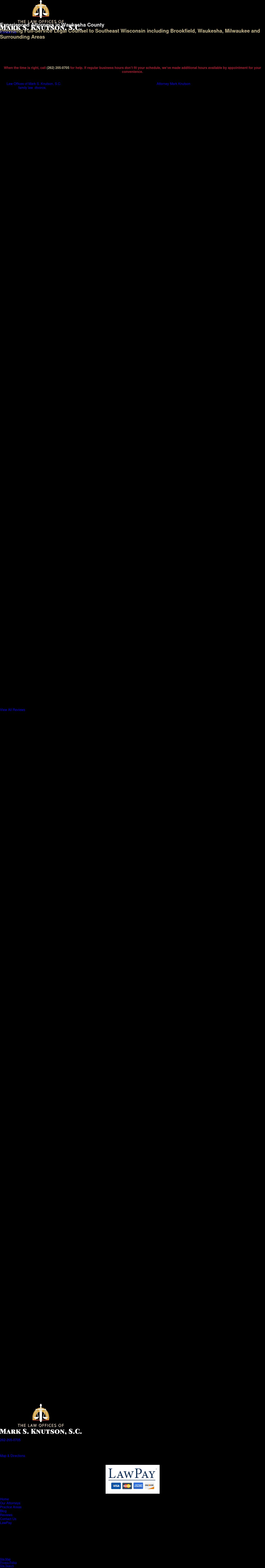 Law Offices Of Mark S. Knutson, S.C. The Law Offices of Mark S. Knutson | Brookfield, WI Lawyer you can trust and respect, convenient appointments. Complete legal assistance for family law, estate law, probate, litigation. Call 262-785-9000.