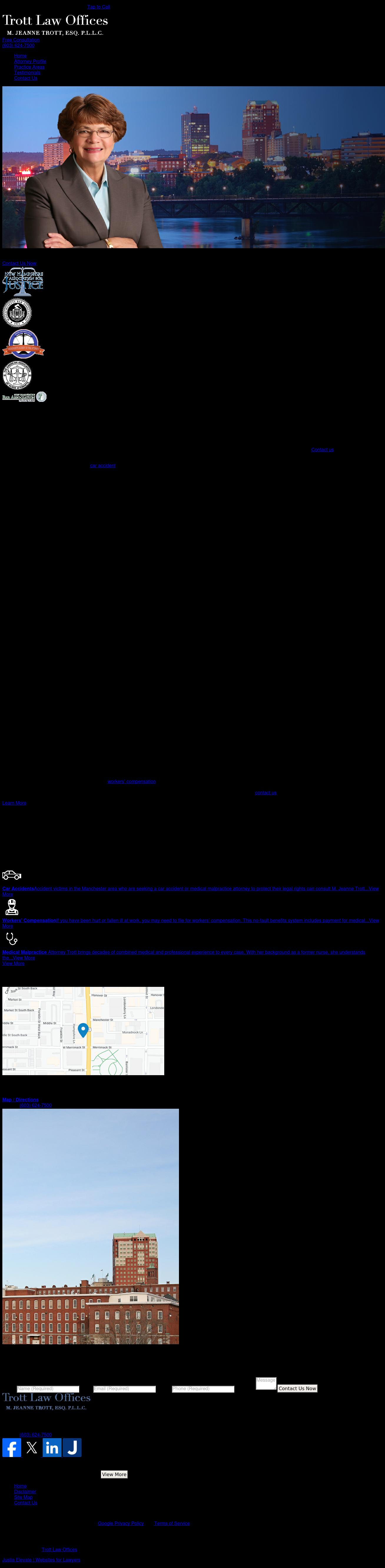 M. Jeanne Trott New Hampshire Personal Injury Lawyer - Manchester Accident Attorney - Trott Law Offices Free Consultation - Call (603) 624-7500 - Trott Law Offices helps victims and their families receive compensation for their injuries in Personal Injury and Accident cases.