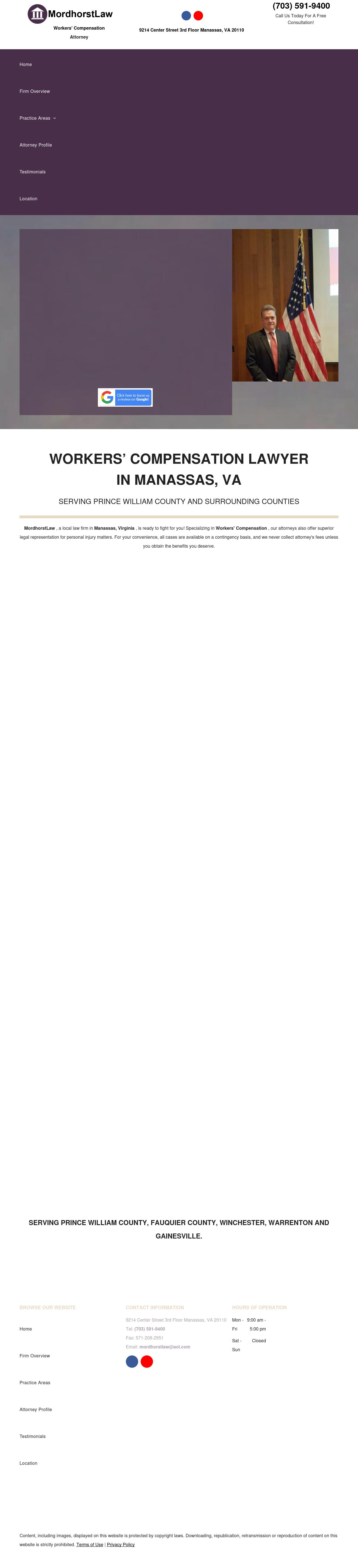 Robert A. Mordhorst, Esq., P.C. Workers Compensation Lawyer Serving Gainesville, VA Locklin & Mordhorst is a reputable workers compensation law firm defending Gainesville, VA. Contact us at (703) 591-9400 to discuss your case today!